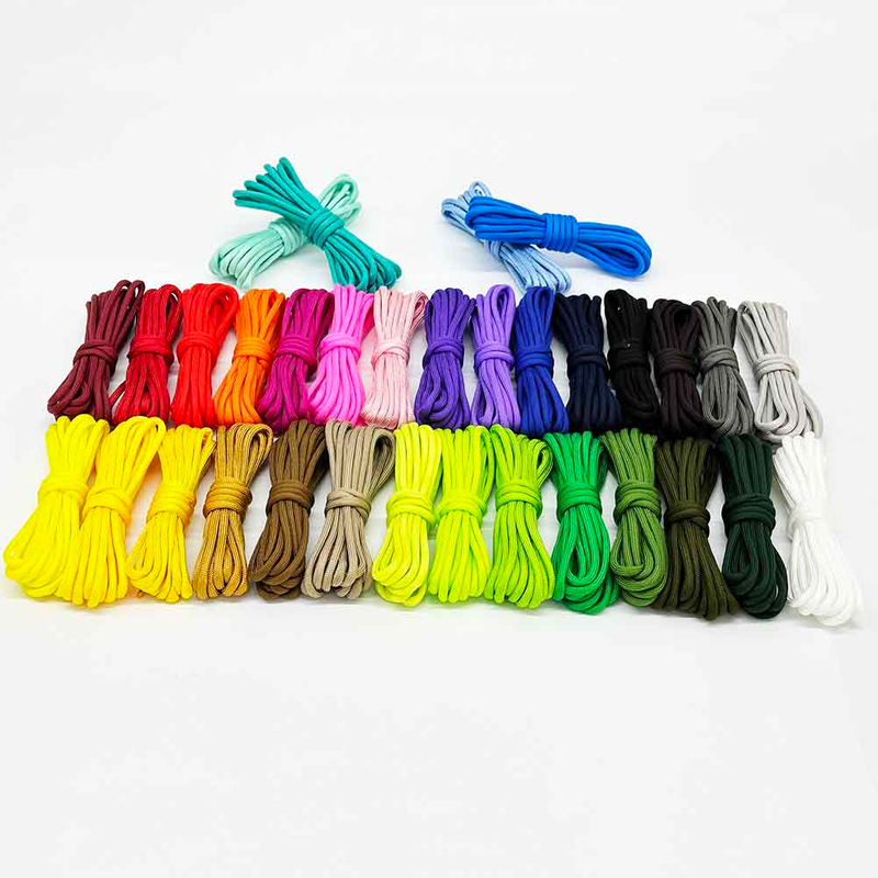 This parachute cord is designed with a high breaking force and features a tightly woven outer skin that encloses polyester core, resulting in an extremely strong and wear-resistant rope body.
